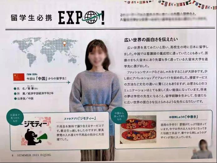 留学生当选日本久留米大学杂志代言人
